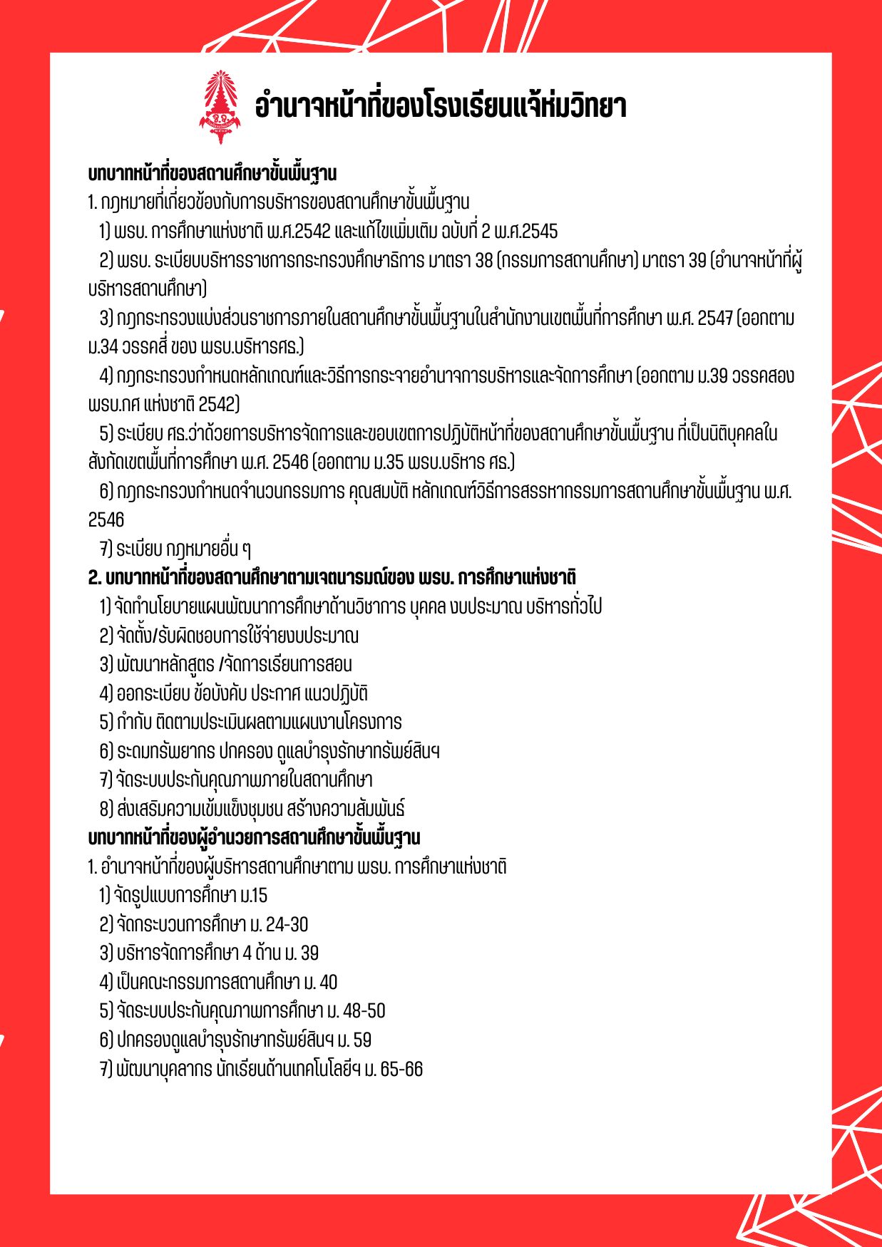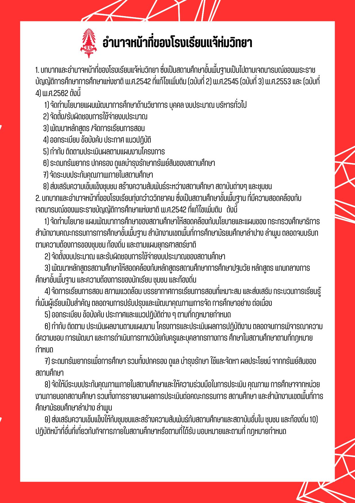 อำนาจหน้าที่ของโรงเรียนแจ้ห่มวิทยา